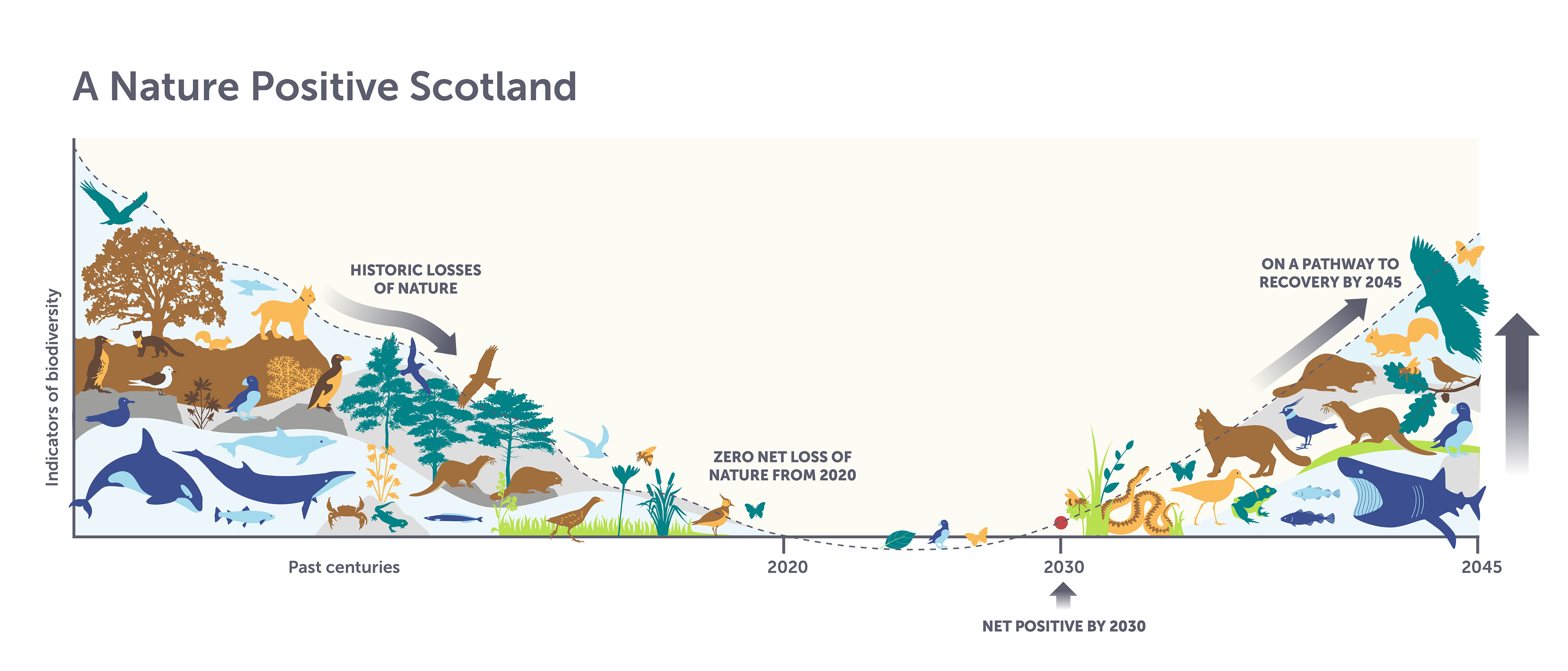 Data interpretation graphics for RSPB and RSPB Scotland, used in reports and advocacy materialsĀ on nature-positive policy and recovery targets.